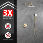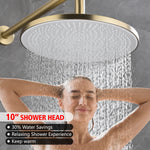 • 2. 10-Inch Air-Infused Showerhead for Temperature Stability: The shower system set combines advanced air-infusion technology with wide water coverage, enhancing water flow while keeping a consistent temperature for shower experience.