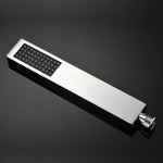 The exceptionally wide rain flow flood jet emerges from the shower panel just like a waterfall.