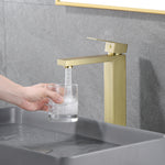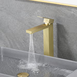 sumerain Tall Vessel Bathroom Faucet Brushed Gold Stainless Steel Lavatory Faucet Single Handle One Hole, Water-Saving