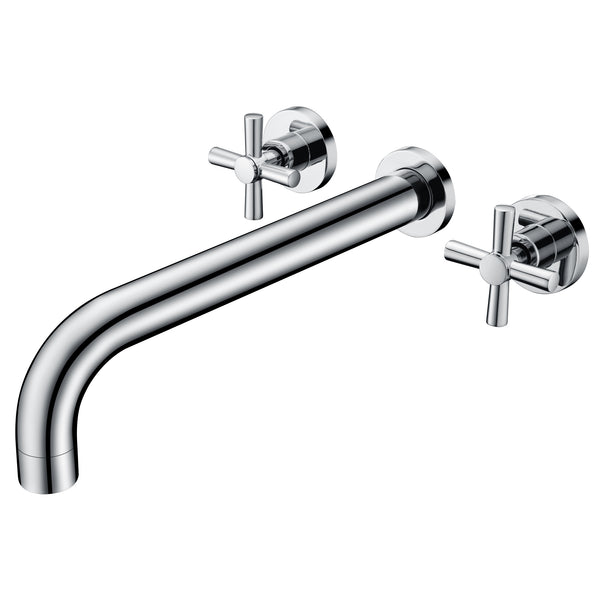 SUMERAIN Badewannenarmatur zur Wandmontage, Badewannenarmatur mit hohem Durchfluss, Chrom-Finish mit rauem Ventil, extra langem Auslauf und Kreuzgriffen