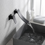 sumerain Wandmontage, schwarzer Badezimmer-Wasserhahn, Wasserfall-Wasserhahn für Badezimmer-Waschbecken, einzelner Linkshänder-Griff