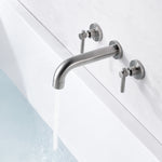 Vervollständigen Sie den Look Ihres Bades mit diesem Sumerain-Wannenfüller mit Doppelgriffen für die Wandmontage! Gepaart mit klaren Linien und gebürstetem Nickel-Finish wird es nicht nur für sein ansehnliches Aussehen, sondern auch für seine dauerhafte Haltbarkeit gelobt. Die solide Messingkonstruktion und die Keramikscheibenkartusche bieten über viele Jahre hinweg hervorragende Leistung und sind beständig gegen Korrosion und Auslaufen. Mit einer Auslaufdurchflussrate von 9,71 GPM bei 60 PSI kann dieser wandmontierte Badewannenhahn Ihre Badewanne in wenigen Minuten füllen. 7-11/16 Zoll Auslaufreichweite. Zwei einfach zu drehende Hebelgriffe steuern Wasser und Temperatur sanft und mühelos. Um Zeit und zusätzliche Kosten zu sparen, zeigen Sie Ihrem Klempner bitte vor der Installation das Installationsvideo unter dem Hauptbild auf der Produktseite und bewahren Sie die Bedienungsanleitung für den zukünftigen Bedarf sorgfältig auf. Dieser wandmontierte Wannenfüller verfügt über eine cUPC-Zertifizierung und entspricht den folgenden Standards: ASME A112.18.1/CSA B125.1-2018, Sanitärversorgungsarmaturen.