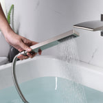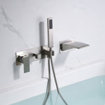 sumerain Wandmontage-Badewannen-Wasserhahn, gebürstetes Nickel, Wasserfall-Badewannen-Wasserhahn mit Handbrause, Linkshänder-Wasserhahn