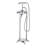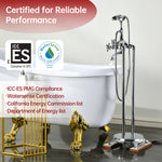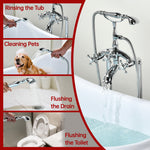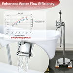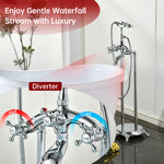 Upgrade your bathing experience with this freestanding bathtub faucet, designed for lasting durability, smooth operation, and a refined look. Solid brass construction ensures strength, corrosion resistance, and dependable performance over time.Equipped with a flexible handheld shower, it adapts easily to everyday routines—from rinsing the tub to quick clean-ups. The dual-handle design with an integrated diverter allows smooth, precise control between water flow and functions.With a high flow rate of 8.66 GPM (32.8 L/min) at 60 PSI, your bathtub fills in minutes—saving you time while providing a steady, soothing water stream.Designed for easy DIY installation, this floor-mounted tub filler includes all necessary hardware and U.S.-standard supply lines for a secure fit.Bring elegance and performance together with this classic freestanding bathtub faucet—a perfect addition to elevate your bathing experience.