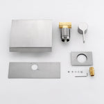 Im Lieferumfang sind ein Wasserfallauslauf, ein Rohventil, Abdeckplatten und Griffe enthalten.
